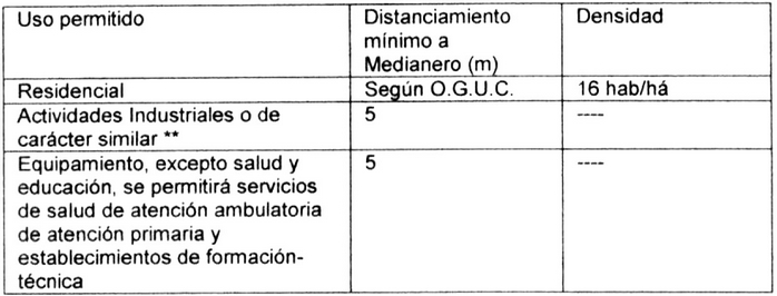 Usos de suelo permitidos: Serán los correspondientes a las Zonas Habitacionales Mixtas, establecidos en el artículo 3.1.1.1 de la presente ordenanza, además del uso de área verde. Las normas urbanísticas aplicables a estos territorios serán las siguientes: