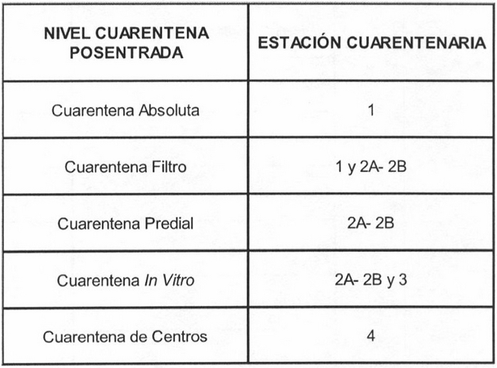 4. Se definen los siguientes niveles de Cuarentena Posentrada, cuyos diferentes aspectos relacionados con las características, conducción, manejo y procedimientos serán establecidos en resoluciones específicas por nivel de cuarentena, como se describe a continuación: