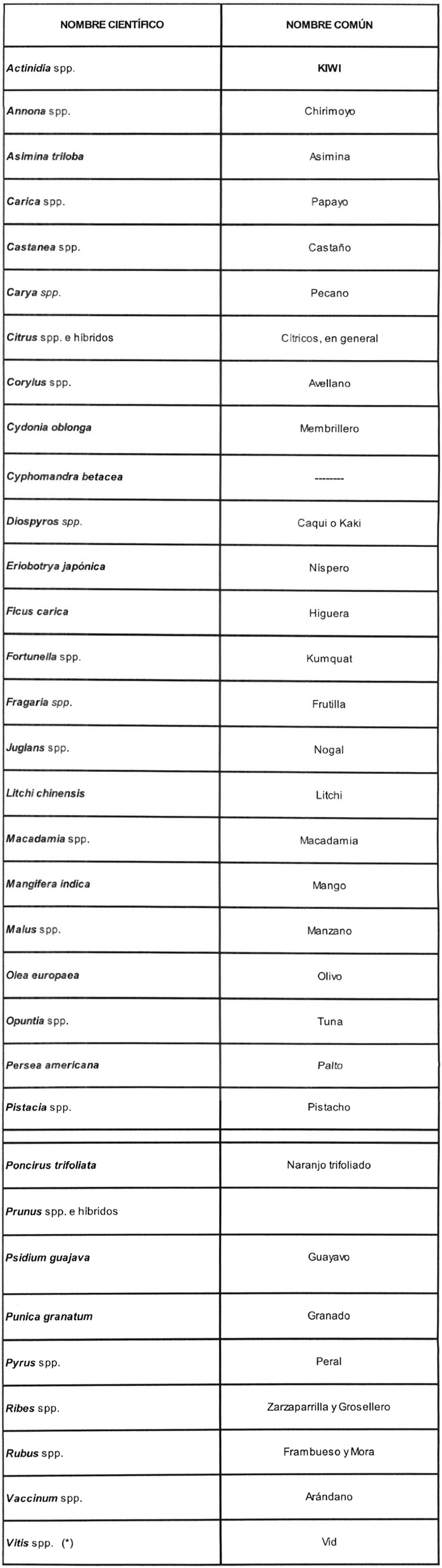(*) Para Vitis spp. sólo se autoriza el ingreso de estacas sin enraizar.
