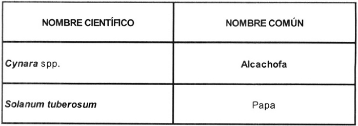 a. Las plantas (excluido semillas y cultivo de material in vitro) de las siguientes especies vegetales, por el período de cuarentena establecido en la normativa vigente, para cada Nivel de Cuarentena::