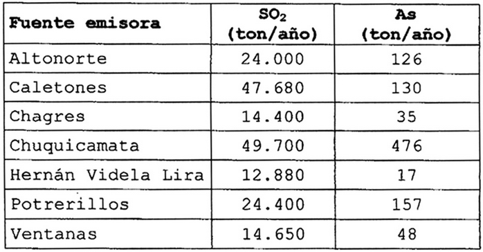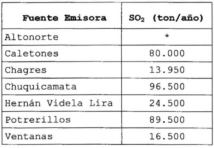 b) Fuente emisora existente: corresponde a las fundiciones: Altonorte,
