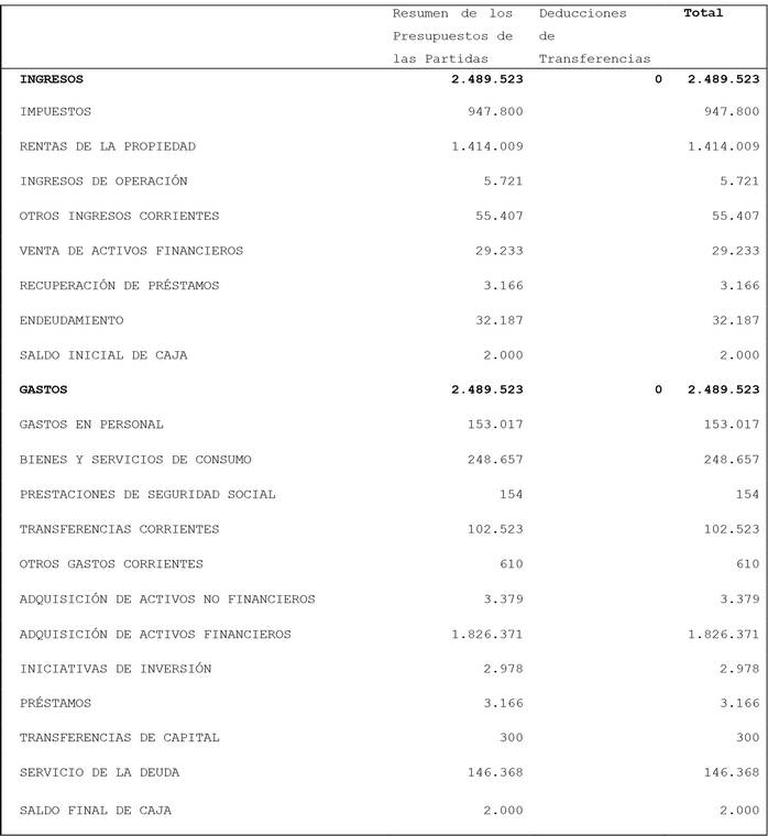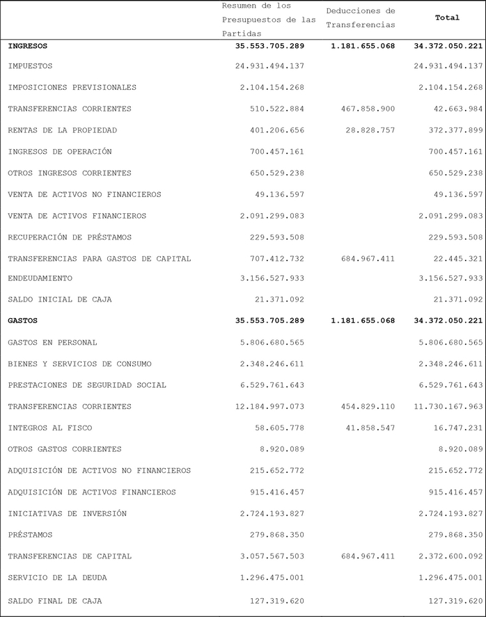 Artículo 1º.- Apruébase el Presupuesto de ingresos y gastos del sector público para el año 2014, según el detalle que se indica: