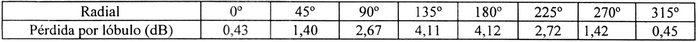 - Diagrama de radiación horizontal, de acuerdo a la siguiente tabla: