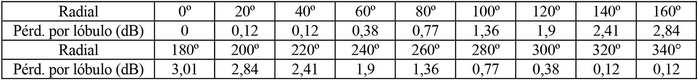- Diagrama de radiación horizontal de acuerdo a la siguiente tabla: