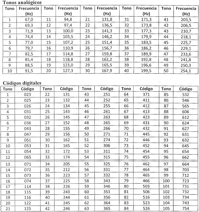 TONOS ANALÓGICOS Y CÓDIGOS DIGITALES A EMPLEAR EN LAS ESTACIONES REPETIDORAS NO ATENDIDAS