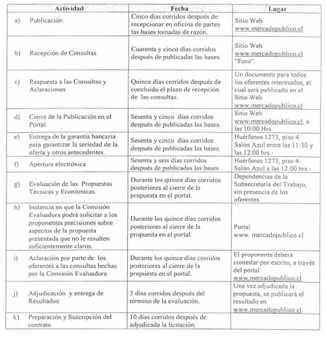 1.- Llámase a propuesta pública para los Servicios de Implementación, alojamiento y administración del Portal de la Bolsa Nacional de Empleo (www.bne.cl) según lo establecido en la ley Nº 19.728, en adelante "BNE" o "Bolsa Nacional de Empleo"