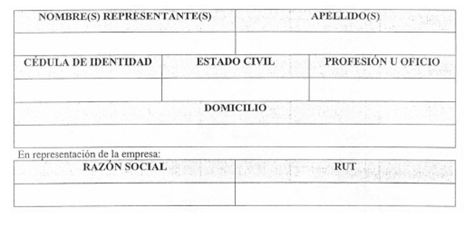 > Nombre y R.U.T. del representante legal.
