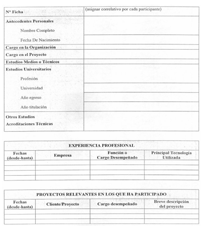 > CV de los profesionales (anexo 5) que formarán el equipo de trabajo que llevará a cabo el proyecto, señalando claramente el profesional que oficiará como Director de Proyecto.