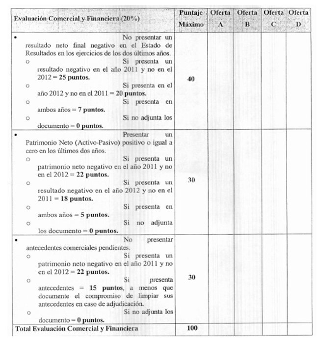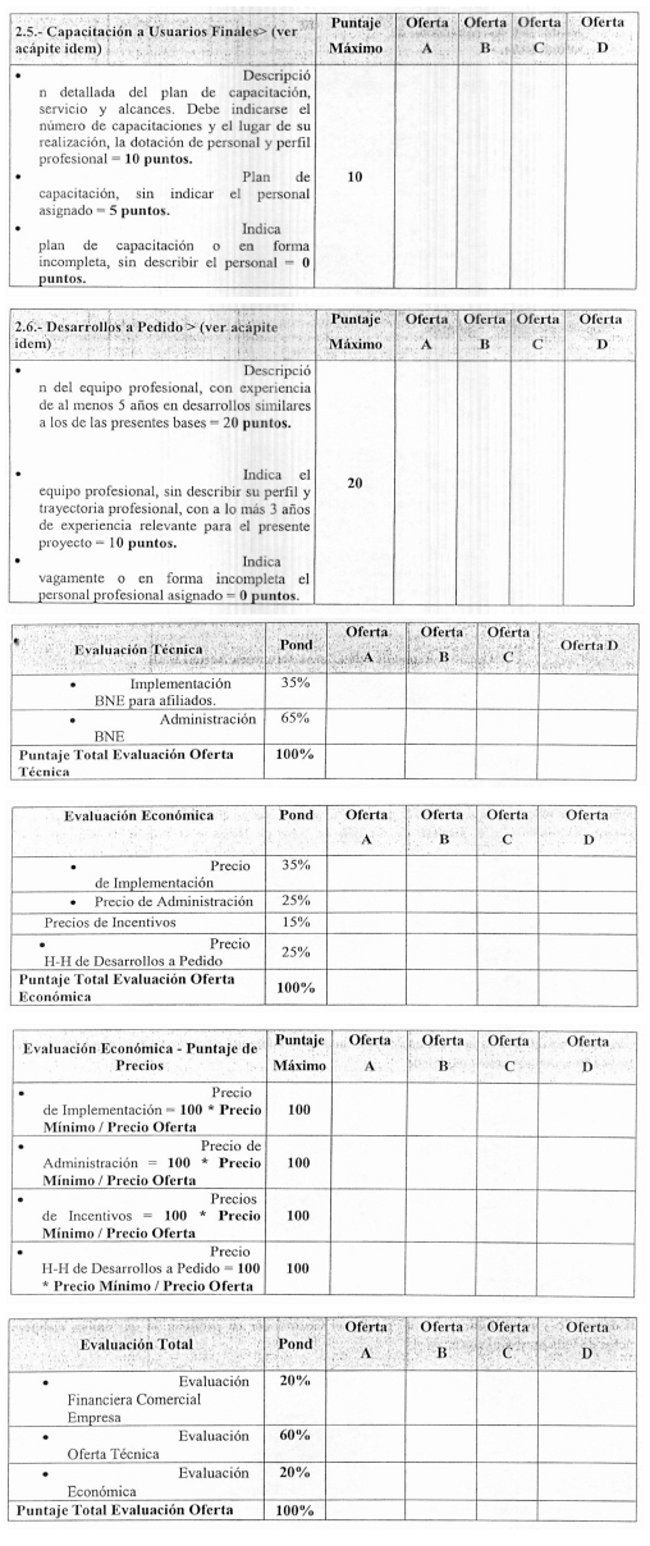 Tanto el estado financiero de la empresa como los certificados de antecedentes comerciales serán evaluados según lo indicado en el Título 6 de las Bases Técnicas y ANEXO 6.