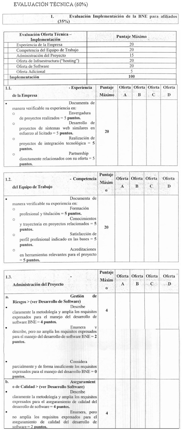 Podrán participar en esta propuesta pública y optar a la provisión y administración del sistema y servicios encomendados, sólo quienes reúnan las condiciones necesarias para proveer y administrar el producto y los servicios fundamentales de la presente licitación y que demuestren documentadamente, tener experiencia suficiente en la implementación, administración y soporte de sistemas de información o experiencia en la prestación de servicios similares o análogos a los que se busca implementar por medio de la BNE