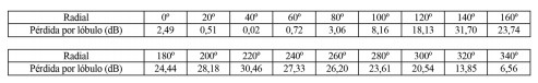 - Pérdidas (cables, conectores) : 1,2 dB.