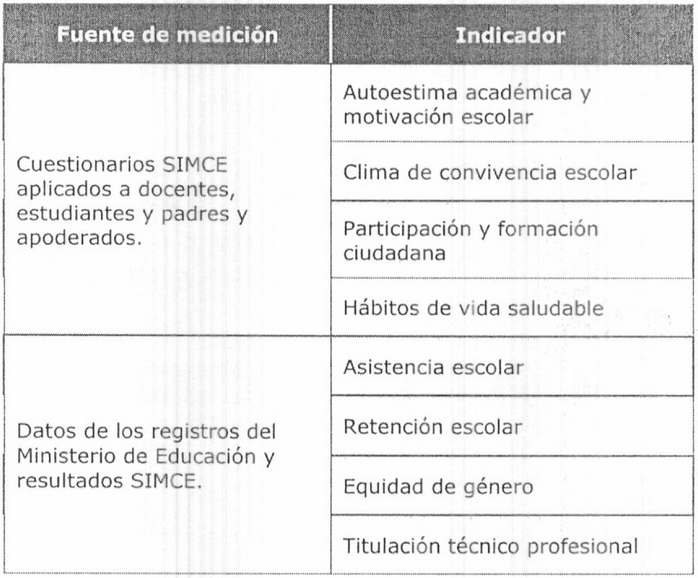 En la metodología de Ordenación se ponderan los Otros Indicadores de Calidad Educativa, Tendencia SIMCE y Puntaje SIMCE con el valor más alto posible, dentro de lo que permite la ley. De esta forma, el indicador que mide Estándares de Aprendizaje tiene una ponderación del 67% y los Otros Indicadores de Calidad, Tendencia SIMCE y Puntaje SIMCE, en conjunto, tienen un peso de un 33%, distribuido de manera equitativa entre todos ellos (tal como se muestra en el cuadro Nº 13). El Consejo Nacional de Educación aprobó como Otros Indicadores de Calidad Educativa 8 indicadores que, junto con Tendencia SIMCE y Puntaje SIMCE, conforman un total de 10 indicadores.
