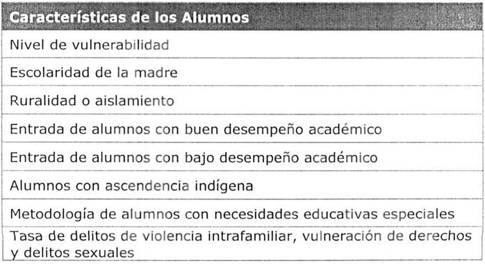 10 Todas las variables de Características de los Alumnos están construidas para que un mayor valor en sus escalas refleje mayor dificultad de contexto educativo, con excepción de la variable Entrada de Alumnos con Buen Desempeño Académico. Por lo tanto, todos los coeficientes deben ser negativos con excepción del que corresponde a esta última variable.