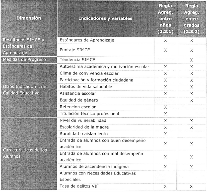 Al fijar los coeficientes de la regresión el primer año, la metodología busca resguardar que se entregue a los establecimientos una referencia estable de lo que deben lograr para mejorar su clasificación. De esta forma, los establecimientos son evaluados con la misma "vara" todos los años de vigencia de esta metodología.