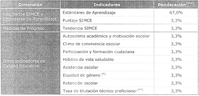 (***) La ponderación de 3,3% para indicadores distintos a Estándares de Aprendizaje se utiliza cuando se calculan todos los indicadores.