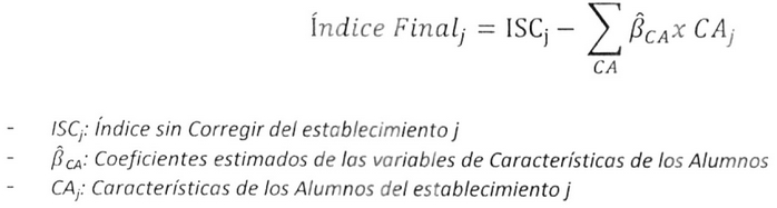 Una vez que se obtiene el Índice sin Corregir, este se corrige por una estimación de la influencia que tienen las Características de los Alumnos en los resultados de los estudiantes del establecimiento, para así obtener el Índice Final.