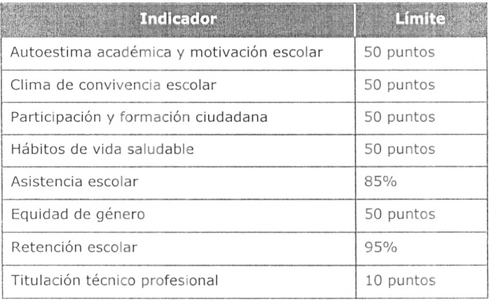 16 Como se desprende del texto, el valor límite de 95% de retención de los estudiantes matriculados que es exigido según este criterio no significa que se exijan 95 puntos en el indicador Retención escolar.