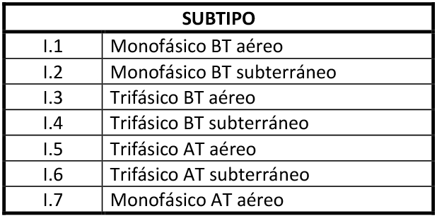 Estarán sujetos a fijación de precios los siguientes subtipos y rangos de potencia de un aumento de capacidad de empalme: