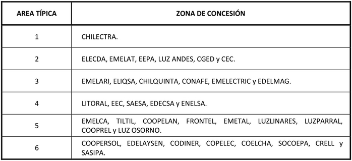 Para cada área típica de distribución, los ponderadores F1, F2, F3, V1, V2 y V3 a emplear en las fórmulas de indexación de los distintos servicios, se presentan a continuación: