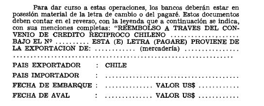 Los bancos remitirán oportunamente al banco avalista, las correspondientes letras o pagarés para su cobro al importador, debiendo señalar en la respectiva carta remesa la siguiente leyenda: "SIRVANSE TOMAR NOTA QUE AL VENCIMIENTO DE ESTAS(OS) LETRAS (PAGARES) NOS REEMBOLSAREMOS AUTOMATICAMENTE DE SUS IMPORTES A TRAVES DEL CONVENIO DE CREDITO RECIPROCO SUSCRITO ENTRE NUESTROS BANCOS CENTRALES".