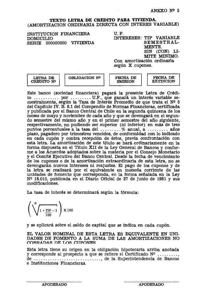 Las letras de crédito para vivienda continuarán imprimiéndose exclusivamente en color azul, tanto para las que se expresen en Unidades de Fomento como para aquellas que se emitan en Indice Valor Promedio.