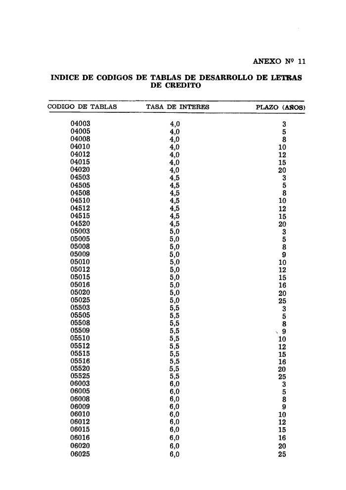 Al igual que las tablas de desarrollo de las letras de crédito, estas tablas deberán estar referidas a una unidad de capital y las cifras se expresarán con no menos de cuatro decimales.