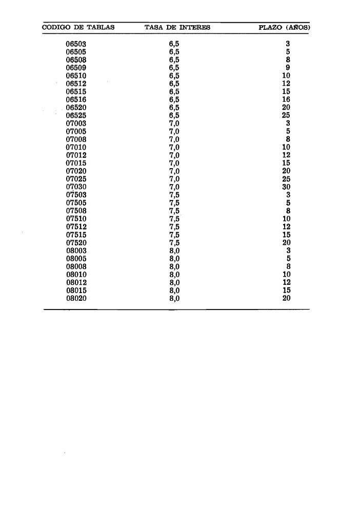 2.3. Tablas de desarrollo aplicables a los créditos para adquisición de vivienda.