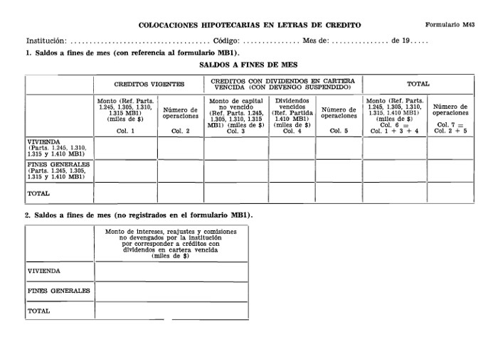 INSTRUCCIONES FORMULARIO M43 Colocaciones hipotecarias en letras de crédito