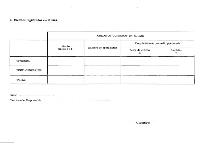 Se informará también el monto de los préstamos en letras de crédito registrados en la contabilidad durante el mes y el respectivo número de operaciones, indicando separadamente los préstamos para la vivienda y aquéllos para fines generales. Además, se anotará la tasa de interés promedio ponderada pactada, identificando la comisión cobrada por la entidad de la tasa a la que están emitidas las letras de crédito.