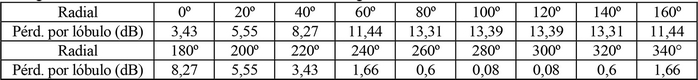 - Diagrama de radiación horizontal de acuerdo a la siguiente tabla: