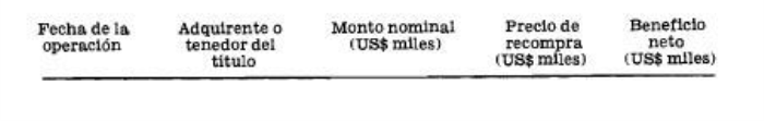 .../ De dicha recompra extraordinaria $..................millones,.../ ... /El total de dicha recompra/... corresponde a la aplicación de los ingresos por intereses y reajustes percibidos en el ejercicio por los créditos incluidos en la cartera vendida al Banco Central de Chile.