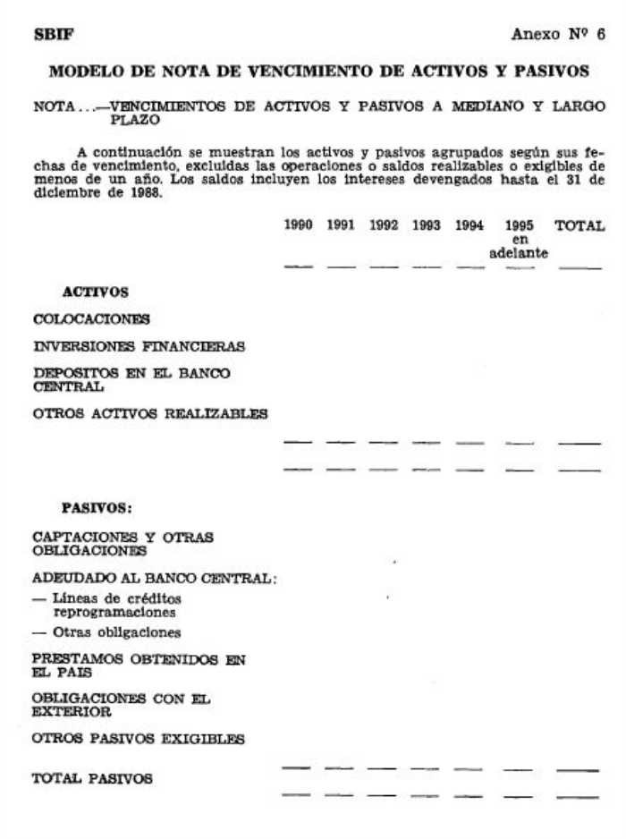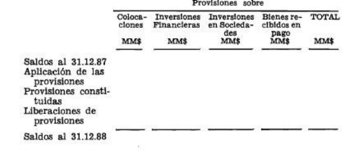 Para la preparación del cuadro deberán considerarse las instrucciones sobre constitución y liberación de provisiones impartidas por este Organismo, mediante Circular N° 2.222-645, del 28 de noviembre de 1986 y en el Capítulo 10-1 de la Recopilación Actualizada de Normas.