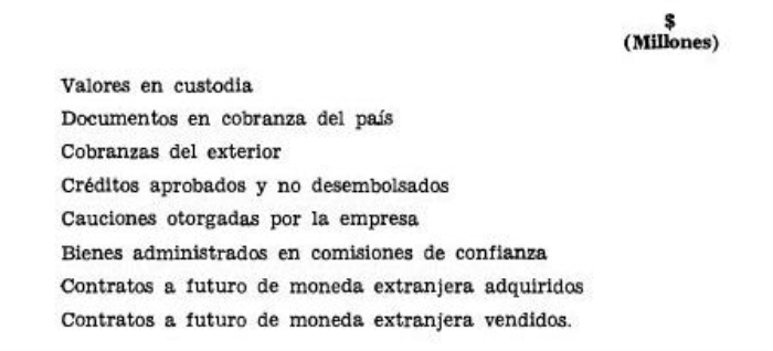 La institución mantiene registrados en cuentas de orden.../, además de lo mencionado en Nota 2,/... los siguientes saldos relacionados con compromisos o con responsabilidades propias del giro: