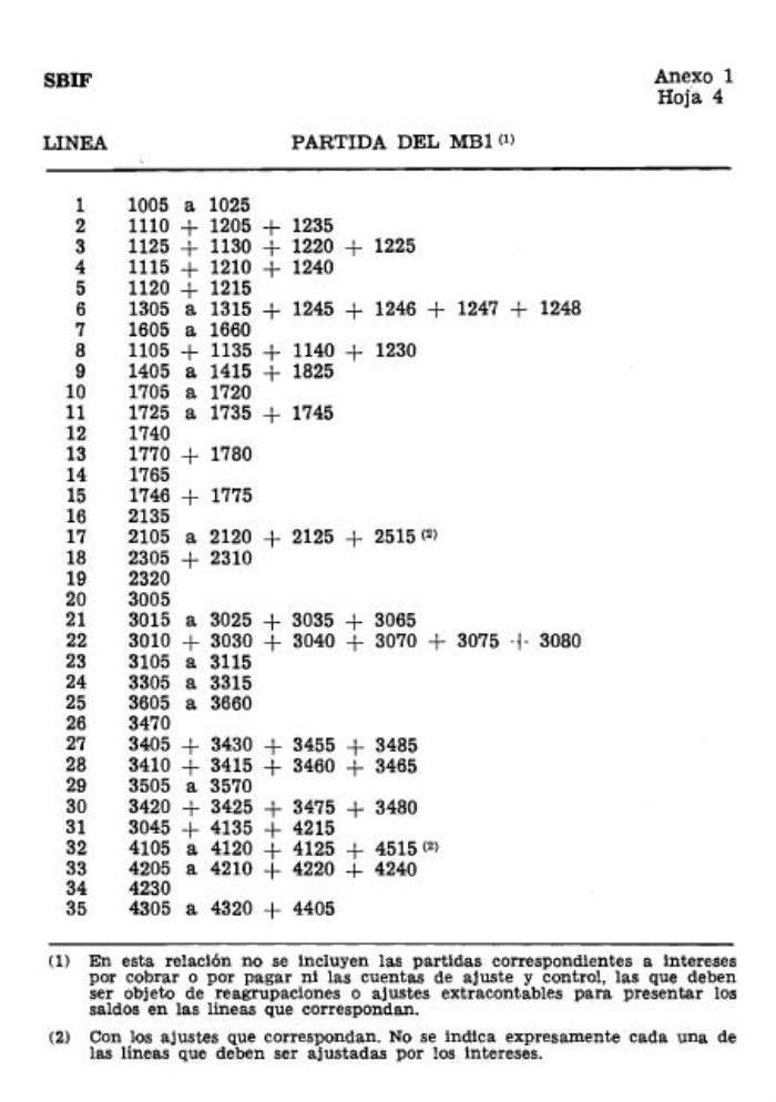 Las cifras que se incorporarán en el Balance General y en el Estado de Resultados se expresarán en millones de pesos, con un decimal y, cuando corresponda, se mostrarán en paréntesis. Para obtenerlas se utilizará el procedimiento de agrupar las partidas de los formularios MB1 y MR1, de la forma que se indica en el Anexo N° 1, teniendo presente, además, las instrucciones siguientes: