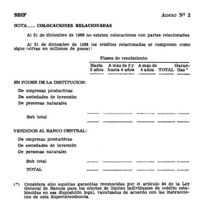 - Durante el año se efectuaron recompras extraordinarias de cartera vendida al Banco Central de Chile que produjeron efectos en los resultados del ejercicio, por un total de $...............millones.. ./ Al 31 de diciembre de 1988 se mantienen provisiones para recompra extraordinaria de cartera, con cargo a resultados del ejercicio por un total de $............... millones/...