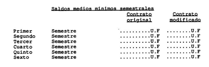 "Este saldo promedio debe ser, para cada semestre convenido, contado desde el primer día del mes siguiente a aquel en que se efectúe el primer depósito, el que se indica a continuación:"