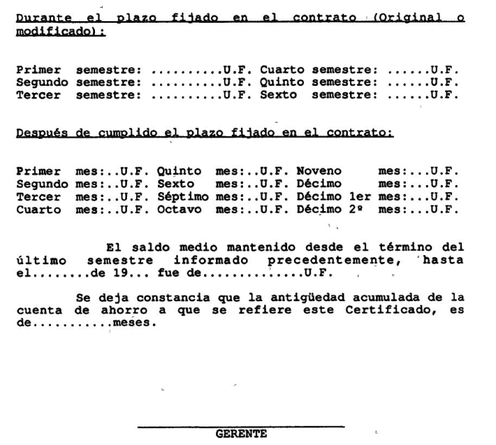 "El ahorro total acumulado, incluidos reajustes e intereses, a la fecha de emisión de este certificado, asciende a la suma de $................ equivalente a ................ Unidades de Fomento. (°) (..)"