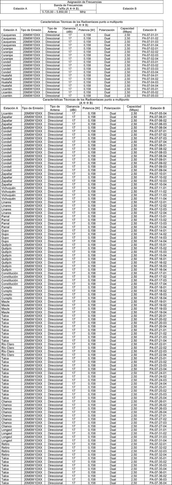 1.1 Radioenlaces punto a multipunto, según se indica a continuación:
