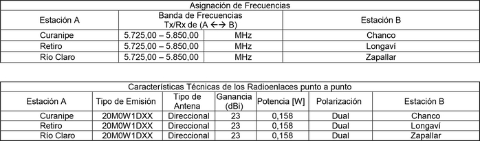 . 1.2 Radioenlaces punto a punto, según se indica a continuación: