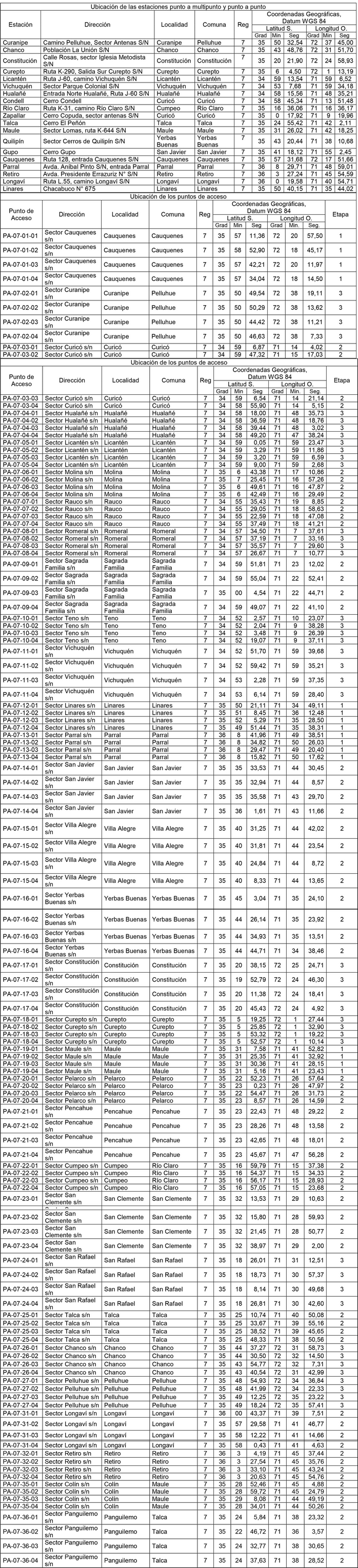 . 2. Autorízase a la concesionaria para instalar, operar y explotar puntos de acceso, según se indica a continuación: