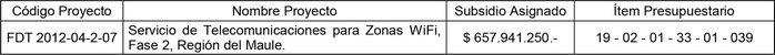 l) Ord. Nº 9.170 GFDT Nº 497 de 13.12.2013, que comunica adjudicación de la propuesta Código: FDT 2012-04-2-07, para la Región del Maule, del concurso público "Servicio de Telecomunicaciones para Zonas WiFi", Fase 2, Código: FDT 2012-04-2.