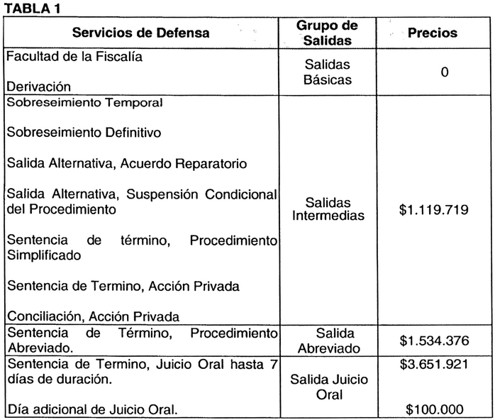 7º Del Arancel de los Servicios: Los servicios de defensa penal y los precios para cada uno de ellos son los que a continuación se detallan: