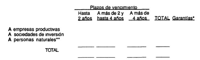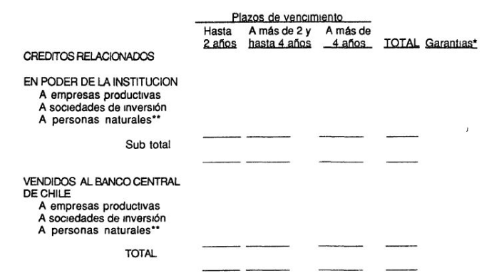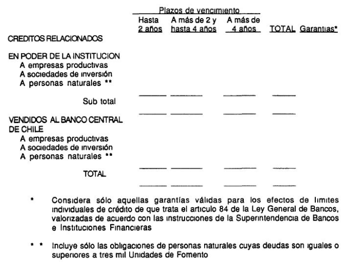 Al .. de ......... de 199 , los créditos otorgados a personas relacionadas se componen como sigue (cifras en millones de pesos).
