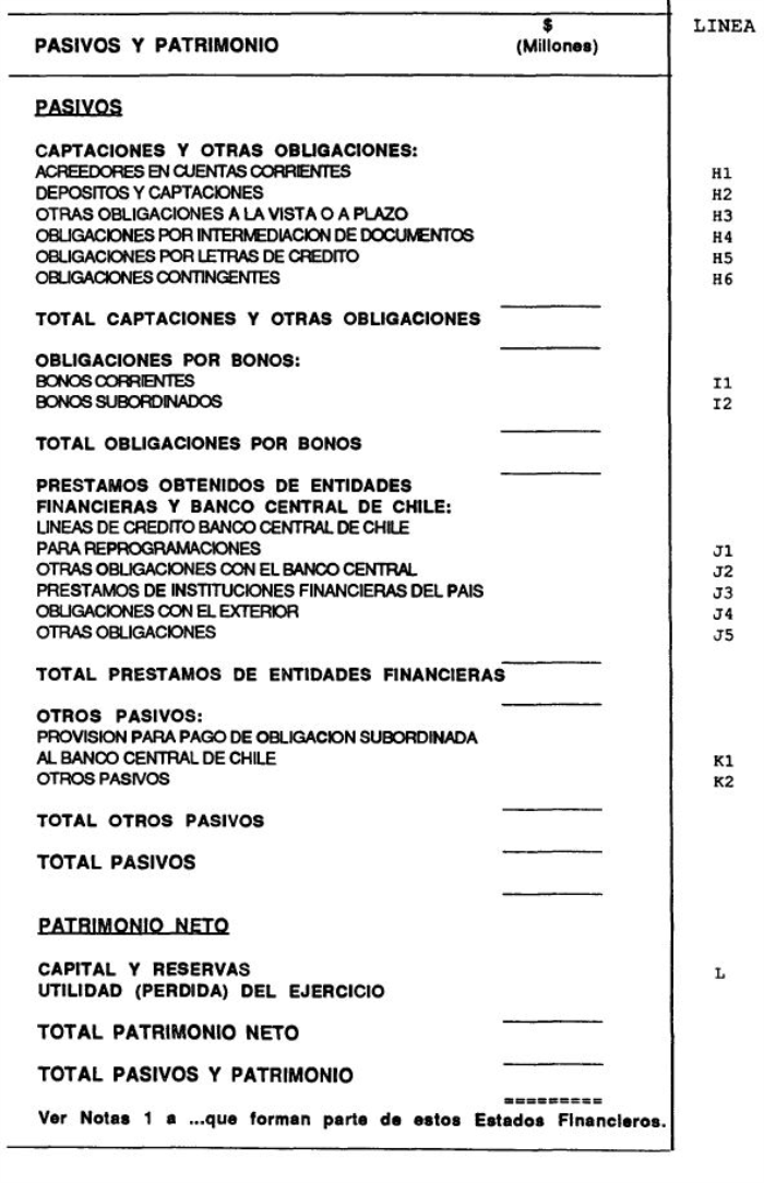 El Estado de Situación deberá acompañarse con las siguientes notas: "Información proporcionada" (Nota N° l); "Obligación subordinada con el Banco Central de Chile" (Nota N°2); y, "Operaciones con partes relacionadas" (Nota N°3).