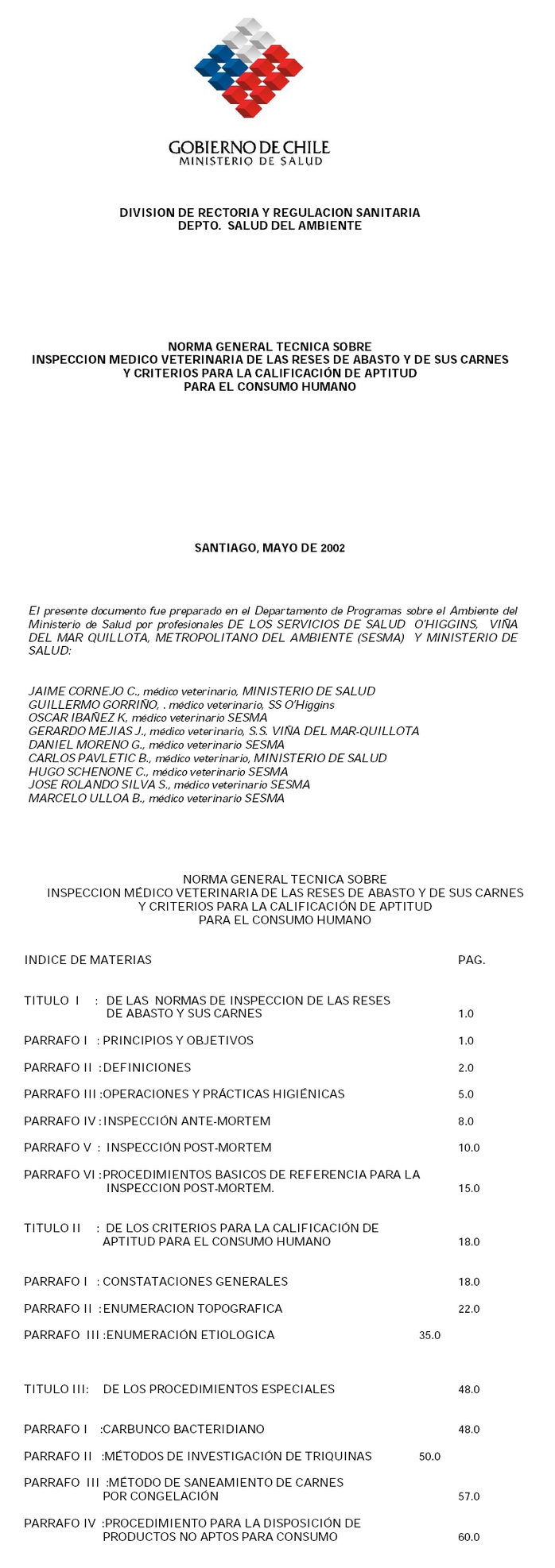TITULO I: DE LAS NORMAS DE INSPECCION DE LAS RESES DE ABASTO Y SUS CARNES