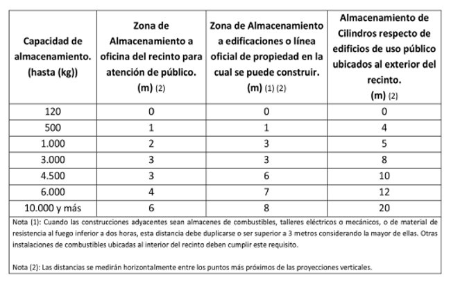 La zona de almacenamiento no se podrá ubicar a menos de dos metros de un subterráneo o sobre éste.