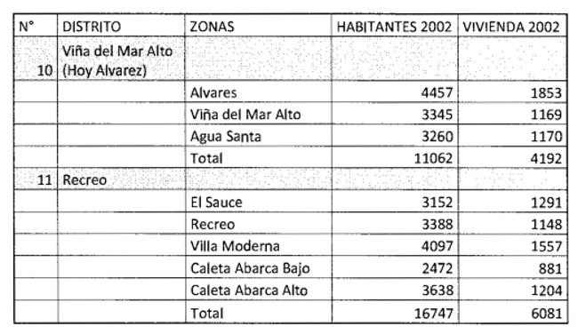 A. De distinta manera, todos los distritos de Viña del Mar, crecieron. Esto establece una diferencia absoluta con respecto al censo de 2002, donde algunos distritos céntricos llegaron a perder viviendas.