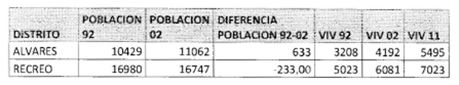De manera particular, el distrito censal de Recreo, experimento un leve descenso en la diferencia entre las tasas anuales de crecimiento de los periodos 1992-2002 y 2002 y 2011. De manera contraria, el distrito "Alvares" experimento un leve aumento en la diferencia entre la tasa anual de crecimiento de cada periodo. Este análisis demuestra es que estos Sectores han enfrentado un proceso de densificación continuo, que comienza tempranamente en la década de 1980, producto de ser barrios de carácter pericentral, con atributos de conectividad y disponibilidad de grandes paños ya urbanizados.