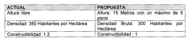 "Densidad: 350 habitantes por hectárea" por "Densidad bruta máxima: 300 habitantes por hectárea"