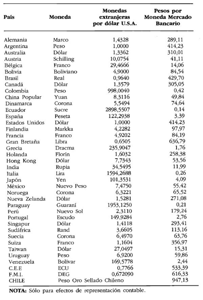 EQUIVALENCIAS DE LAS MONEDAS EXTRANJERAS Y ORO SELLADO CHILENO QUE RIGEN A